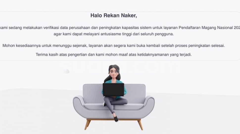 - Situs pendaftaran magang nasional masih eror saat diakses hari ini.