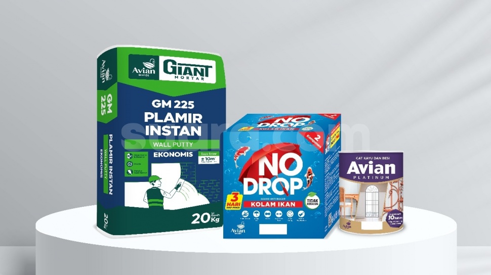 Tiga produk tersebut adalah Avian Platinum (Cat Kayu & Besi), No Drop Kolam Ikan 2 Komponen (Pelapis Anti Bocor), dan GM 225 Plamir Instan (Semen Instan).