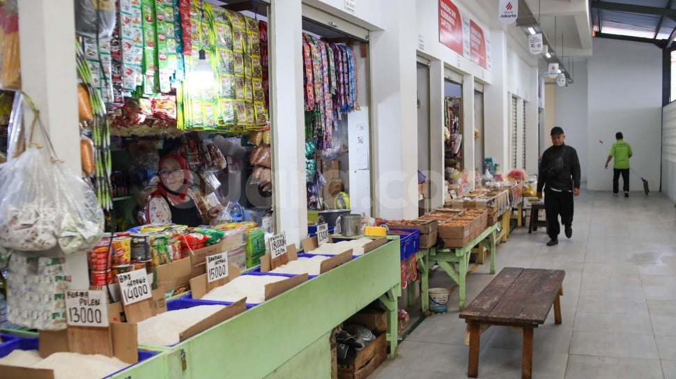 Suasana aktivitas jual-beli di Pasar Kombongan, Jakarta. [Suara.com/Alfian Winanto]