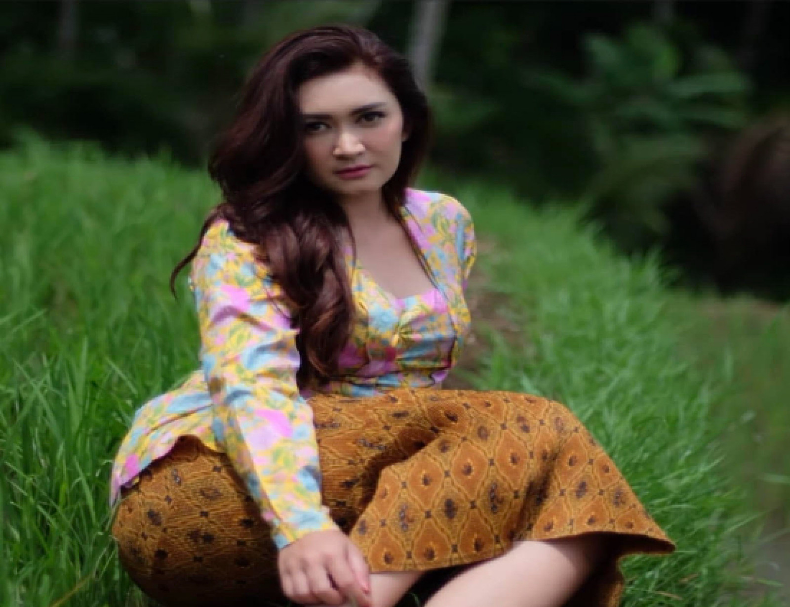 Di foto ini Nafa terlihat memakai baju kebaya berwarna cerah dan kemudian dipadukan dengan rok batik berwarna coklat, Nafa terlihat menggoda namun tidak terkesan nakal.