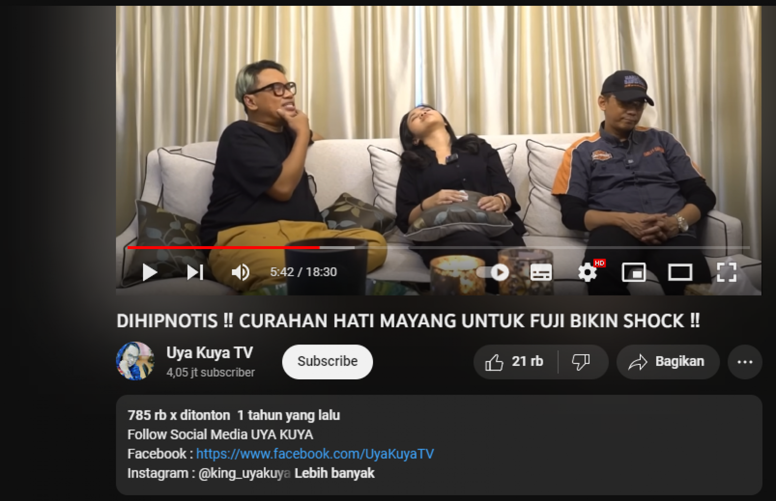 Hingga muncul sebuah video yang memberikan kabar jika Fuji dihipnotis oleh uya Kuya dan membongkar penyebab putusnya dengan Thariq.