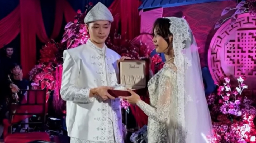 Hengky bahkan terlihat meneteskan air mata setelah akad nikah saking terharunya bisa meminang sang pujaan hati.