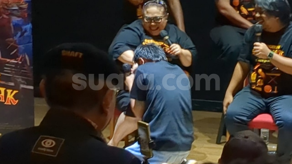 Dalam salah satu adegan yang intens, komika asal Surabaya itu harus memegang kepala Nunung untuk keperluan perannya sebagai seorang paranormal yang menyembuhkan orang kesurupan.