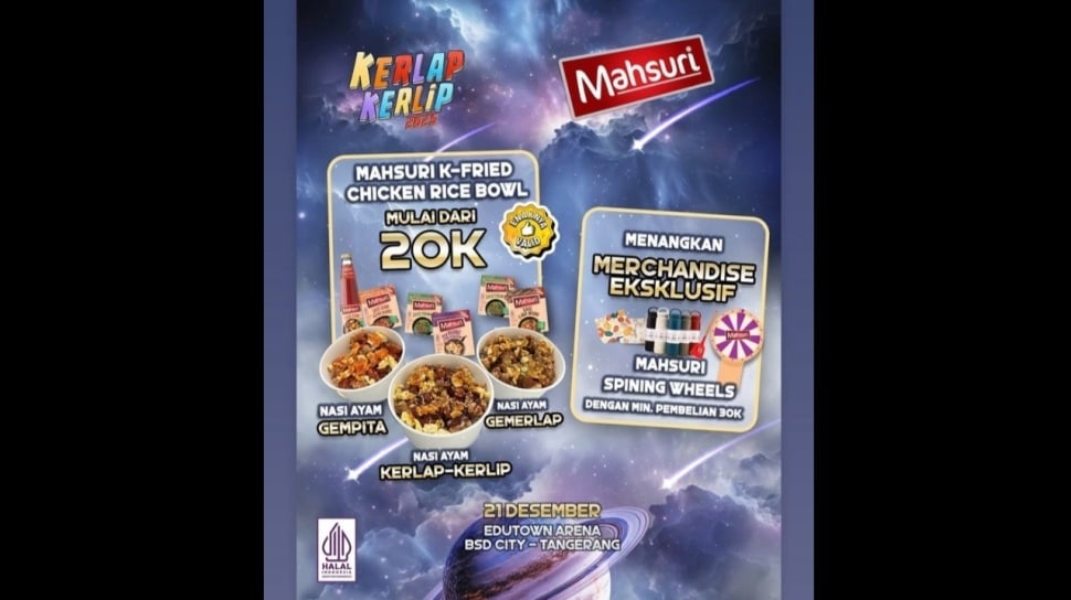 Di Kerlap Kerlip, Mahsuri booth akan hadir untuk memperkenalkan produk-produknya kepada konsumen. Dari demo cooking, harga produk spesial, product trial, hingga games dengan hadiah menarik, Mahsuri akan datang menemani para penonton Kerlap Kerlip.
