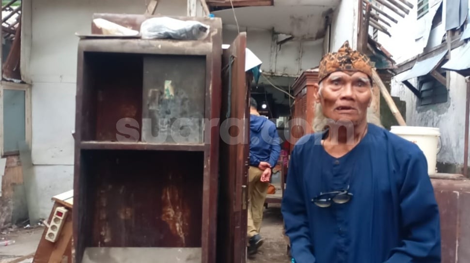 Diding Boneng ditemui di rumahnya yang ambruk karena hujan, di kawasan Matraman, Jakarta Timur, Senin (29/2025). [Rena Pangesti/Suara.com]