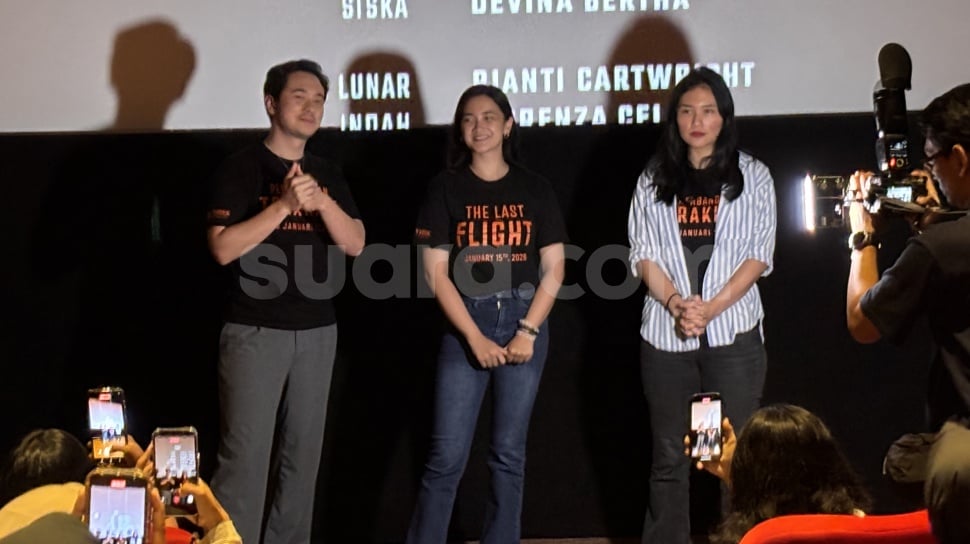 Suara.com - Aktor Jerome Kurnia dan aktris Nadya Arina hadir dalam pemutaran film terbaru mereka, Penerbangan Terakhir, di XXI Ambarrukmo Plaza Yogyakarta pada Sabtu (17/1/2026).