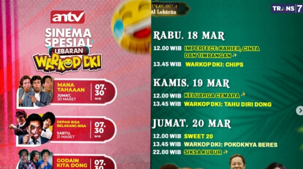 Berbagai stasiun TV pun menghadirkan beragam genre film, mulai dari komedi legendaris, aksi blockbuster, hingga horor menegangkan.