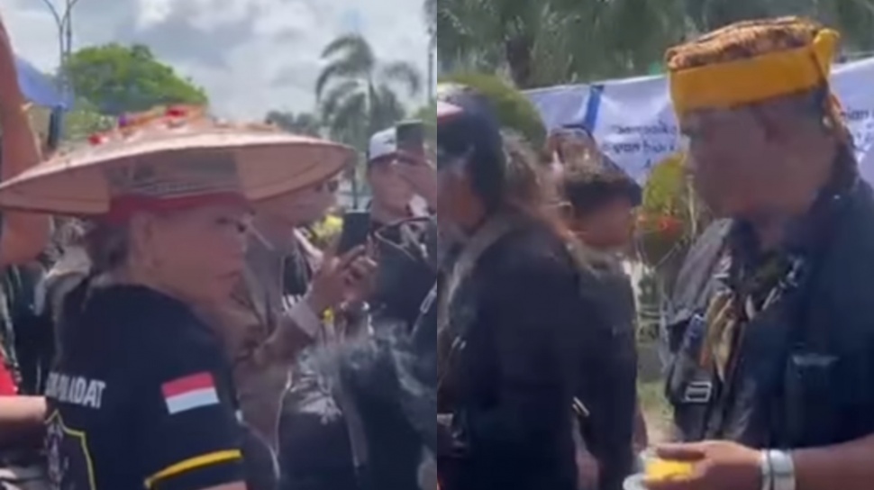 Namun di tengah suasana aksi, ada yang mencuri perhatian. Hal tersebut adalah ritual dari adat Dayak.