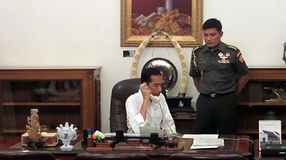 Suara.com - Presiden Joko Widodo terima telepon dari Presidien Cina Xi Jinping di Istana Kepresidenan, Jakarta, Jumat (24/10). [suara.com/Bowo Raharjo]