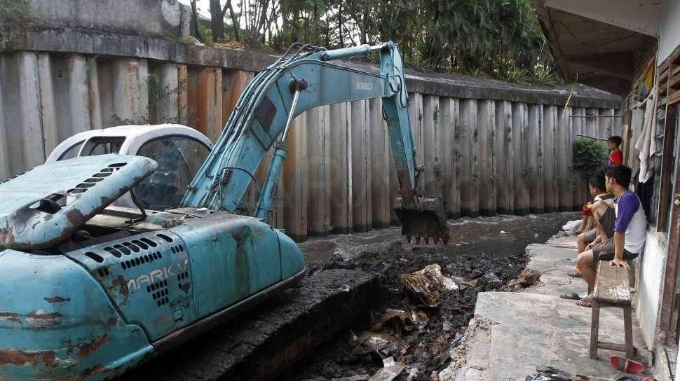 Suara.com - Normalisasi bantaran kali Krukut di kawasan Tendean, Jakarta, Kamis (13/8). Upaya normalisasi kali dan sungai terus dilakukan oleh Pemprov. DKI Jakarta sebagai antisipasi banjir ketika musim hujan tiba. [suara.com/Kurniawan Mas'ud]