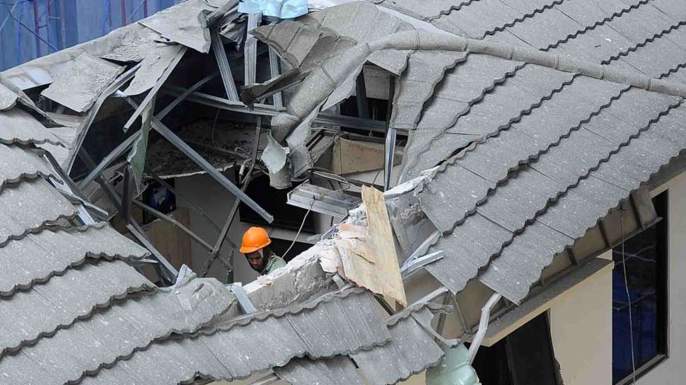 Suara.com - Pekerja mengeluarkan barang dari Gedung Ortala di Kementerian Koordinator Polhukam, Jakarta, Senin (30/11). Gedung milik Kemenko Polhukam itu tertimpa tiang dan bahan bangunan dari pembangunan kantor Kementerian Pertahanan yang terletak bersebelahan. Peristiwa tersebut menyebabkan empat orang staf Kemenkopolhukam mengalami luka-luka. [Antara/Puspa Perwitasari]