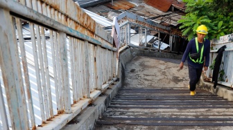 Suara.com - Jembatan Penyeberangan Orang (JPO) di Jalan Dewi Sartika, Cawang, Kramat Jati, Jakarta Timur, kondisinya memprihatinkan karena rusak dan tak terawat.