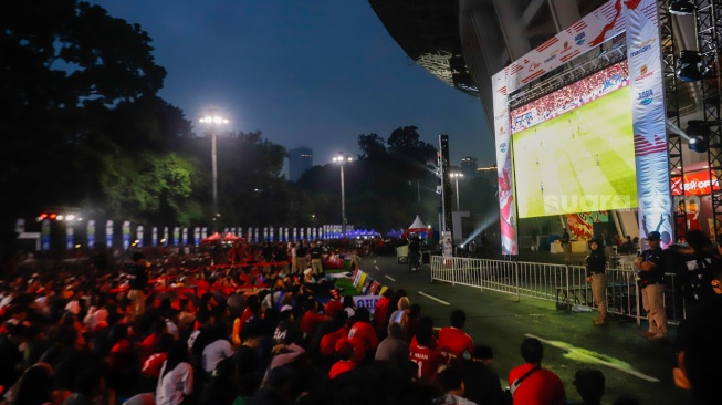 Suara.com - Ekspresi para warga saat nonton bareng (nobar) pertandingan Timnas Indonesia melawan Jepang dalam Kualifikasi Piala Dunia 2026 zona Asia di Stadion Gelora Bung Karno (GBK), Jakarta, Selasa (10/6/2025). Kegiatan nobar ini dihadiri oleh ratusan orang dari berbagai kalangan.