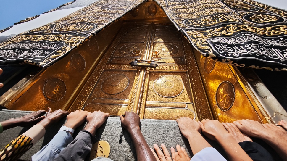 Suara.com - Jemaah haji dari berbagai negara berdoa sambil berusaha memegang dinding pintu Kakbah di Masjidil Haram, Makkah, Arab Saudi, Selasa (10/6/2025).