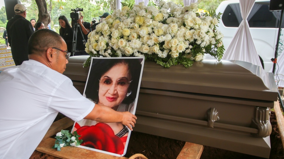 Suara.com - Putra dari istri ke- 7 Presiden Soekarno Alm Yurike Marianne Sanger, Yudhi Sanger meletakan foto ibunya semasa hidup disamping peti jenazah sebelum proses pemakaman di blok khusus TPU Tanah Kusir, Kebayoran Lama, Jakarta, Senin (6/10/2025).