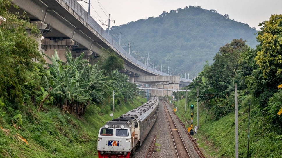 Suara.com - Rangkaian kereta api (KA) melintas menuju Stasiun Gadobangkong di Ngamprah, Kabupaten Bandung Barat, Jawa Barat, Sabtu (11/10/2025).