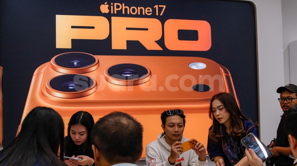Suara.com - Calon pembeli melihat iPhone 17 Series di Mall Grand Indonesia, Jakarta, Jumat (17/10/2025). Apple resmi meluncurkan dan menjual Iphone 17 di Indonesia.