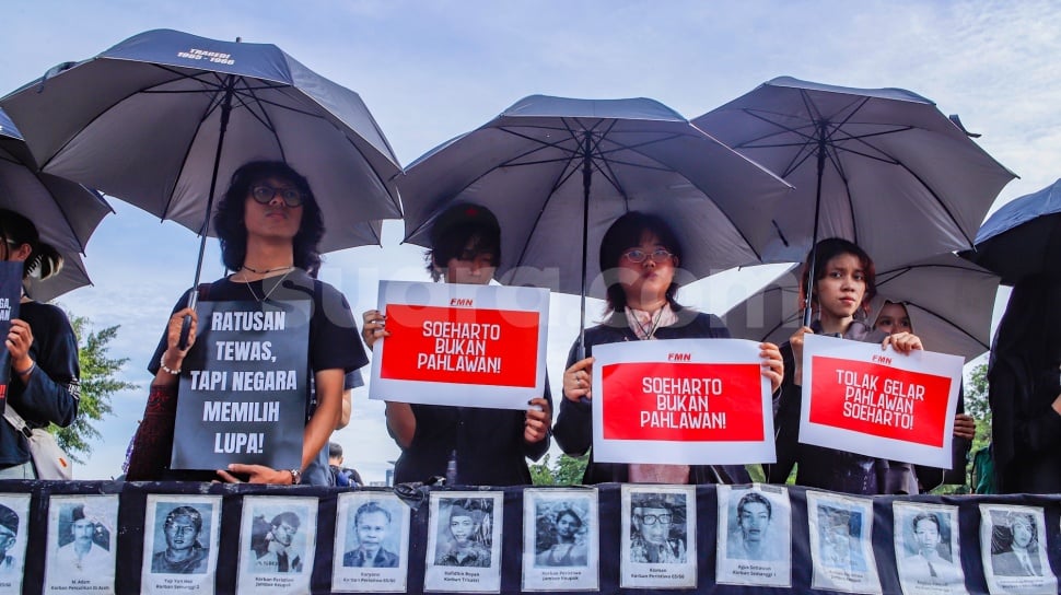 Beberapa tokoh yang diusulkan untuk menjadi pahlawan nasional di antaranya adalah Presiden ke-2 RI Soeharto, Presiden ke-4 RI Abdurrahman Wahid (Gus Dur), serta aktivis buruh perempuan asal Nganjuk, Marsinah. [Suara.com/Alfian Winanto]