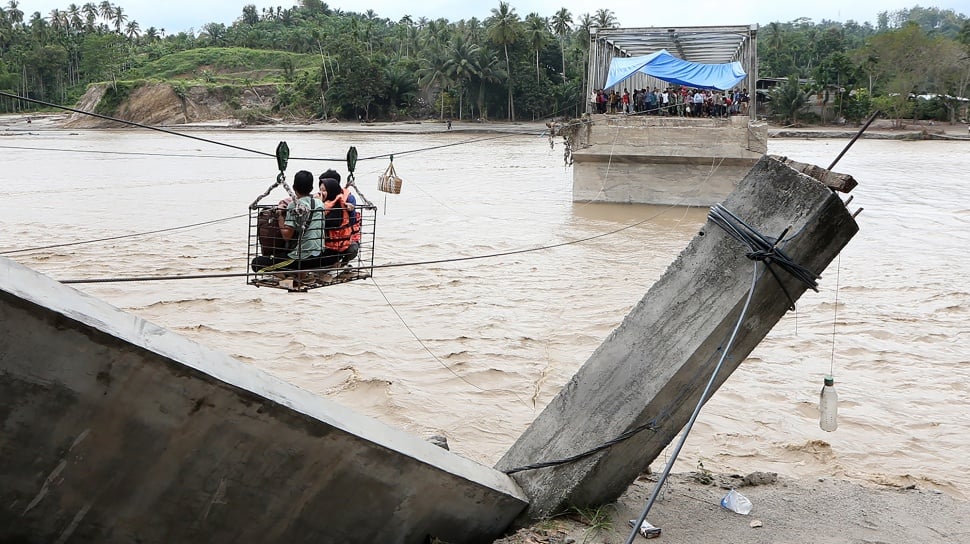 Sejumlah desa di sekitar kawasan itu hingga kini masih terisolasi karena akses utama terputus total, sehingga distribusi bantuan dan mobilitas warga sangat bergantung pada jalur darurat tersebut. Pemerintah daerah bersama BNPB dan TNI dilaporkan tengah menyiapkan pemasangan jembatan bailey sebagai solusi sementara, namun prosesnya membutuhkan waktu karena medan yang sulit serta cuaca yang belum stabil pascabanjir. [ANTARA FOTO/Irwansyah Putra/bar]