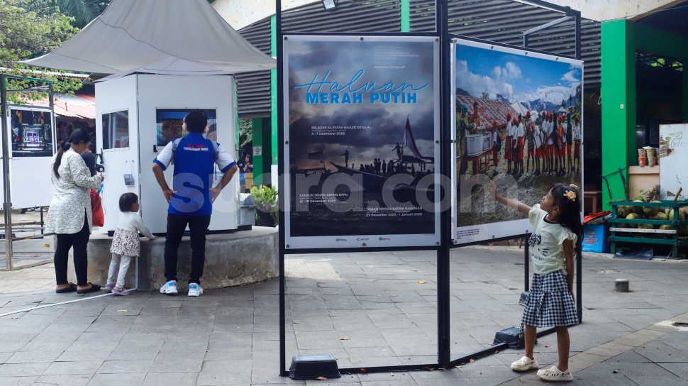Suara.com - Wisatawan melihat karya foto pada pameran Haluan Merah Putih di Taman Margasatwa Ragunan (TMR) di Jakarta, Kamis (25/12/2025).