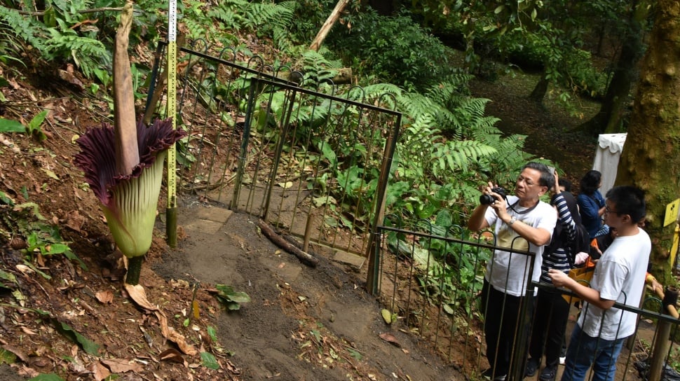 Bunga bangkai raksasa setinggi 140 centimeter itu terakhir kali mekar tahun 2014 dan saat ini berstatus terancam punah (Endangered).