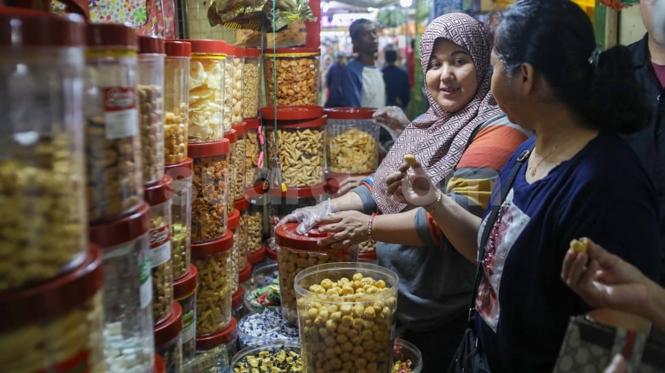 Berbagai jenis kue kering seperti nastar, kastengel, putri salju, hingga lidah kucing dijajakan di sejumlah kios. Kue-kue tersebut menjadi sajian khas yang hampir selalu disuguhkan kepada tamu saat perayaan Lebaran.