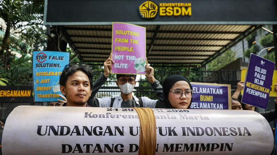 Aksi tersebut digelar guna mendesak pemerintah mengambil peran kepemimpinan di forum global serta menunjukkan komitmen bertransisi secara adil dari energi fosil.