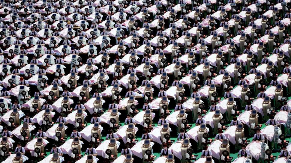 Suara.com - Cina sepertinya tak lepas dengan awalan "ter", entah itu terbesar, tertinggi, atau terbanyak. Kali ini rekor dunia pijat facial terbanyak pun diciptakan di Cina. Sebanyak 1.000 orang menjalani facial di Jinan, Cina selama 30 menit. Aksi ini kemudian dinyatakan sebagai rekor dunia oleh Guinness sebagai perawatan kecantikan terbanyak. [REUTERS/Stringer]