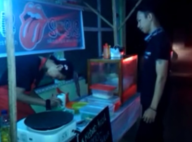 Nah kalau yang ini dagangnya rada sore menjelang malam. Dari martabak Bangka sampe martabak Bandung pasti ada. Tukang martabak nggak kalah rame kok sama tukang-tukang lainnya yanga da di indomaret.