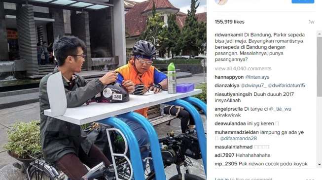 Mungkin cuma ada di Bandung, parkir sepeda unik ini. Di sana, parkir sepeda bisa menjadi meja.