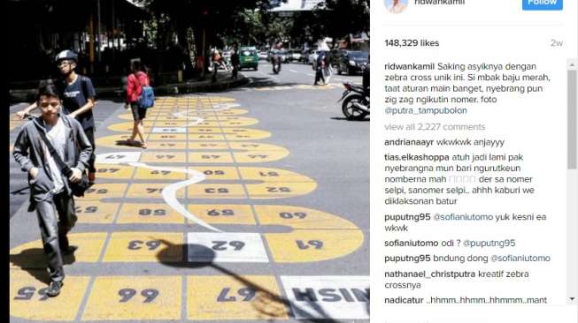 Zebra cross ini sangat unik. Desainnya dibuat menyerupai permainan ular tangga.