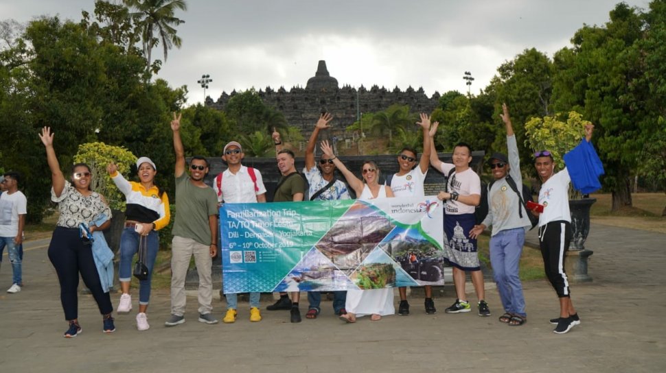 Kalau tak percaya, tengok saja aktivitas famtrip Travel Agent/Tour Operator (TA/TO) Timor Leste di Borobudur. Semuanya kompak terpana. Semuanya kompak dibuat takjub. Tak ada satupun rombongan yang terlihat boring saat berada di area candi Budha terbesar di dunia itu.