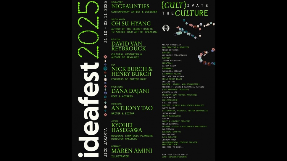 Suara.com - Satu percikan dapat memulai sebuah gerakan, dan satu suara mampu mengubah arah budaya. Dengan semangat tersebut, IdeaFest 2025 kembali hadir mengusung tema “(Cult)ivate the Culture”, mempertegas posisinya sebagai festival kolaborasi kreatif terbesar di Indonesia sekaligus ruang temu para visioner, kreator, serta agen perubahan lintas disiplin.