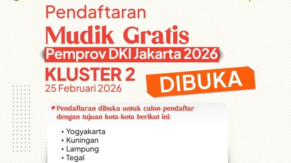• Pemprov DKI Jakarta kembali membuka program mudik gratis 2026 dengan kuota terbatas.