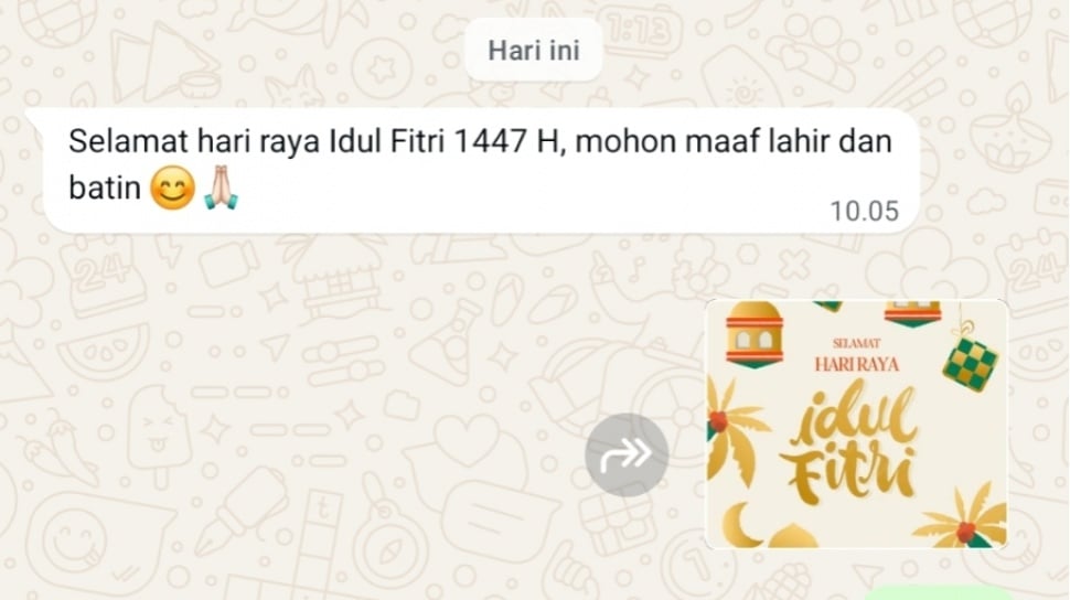Suara.com - Salah satu tradisi ketika merayakan momen Hari Raya Idul Fitri atau Lebaran yaitu bersilaturahmi dengan saling bermaaf-maafan. Di era digital seperti sekarang, ucapan Selamat Hari Raya Idul Fitri juga dapat disampaikan melalui chat personal di WhatsApp.