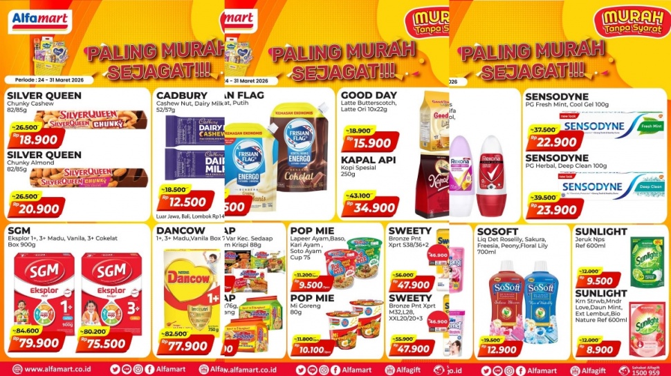 Berikut daftar lengkap harga promo Alfamart di bawah ini. Promo berlaku selama periode 24-31 Maret 2026.