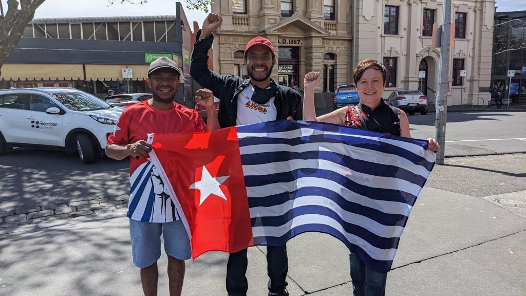 "Hari ini saya bergabung bersama Ballarat Trades Hall, Friends of West Papua Ballarat, Adolf Nora dan Andreas Felle dari West Papuan Community dalam pengibaran bendera Bintang Kejora menandai Hari Kemerdekaan ke-60 mereka, yang tak pernah terwujudkan," kata Belinda kepada Farid Ibrahim dari ABC Indonesia.