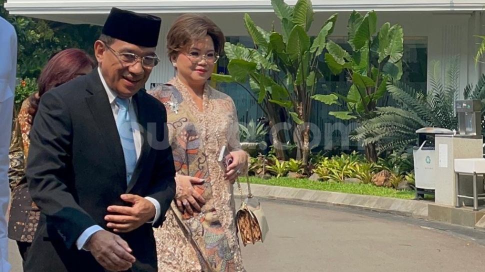 Pantauan Suara.com, Benjamin tiba pukul 14.11. Ia tampak mengenakan pakaian sipil lengkal (PSL) dengan dasi biru dan peci hitam. Benjamin hadir didampingi istri yang mengenakan kebaya.