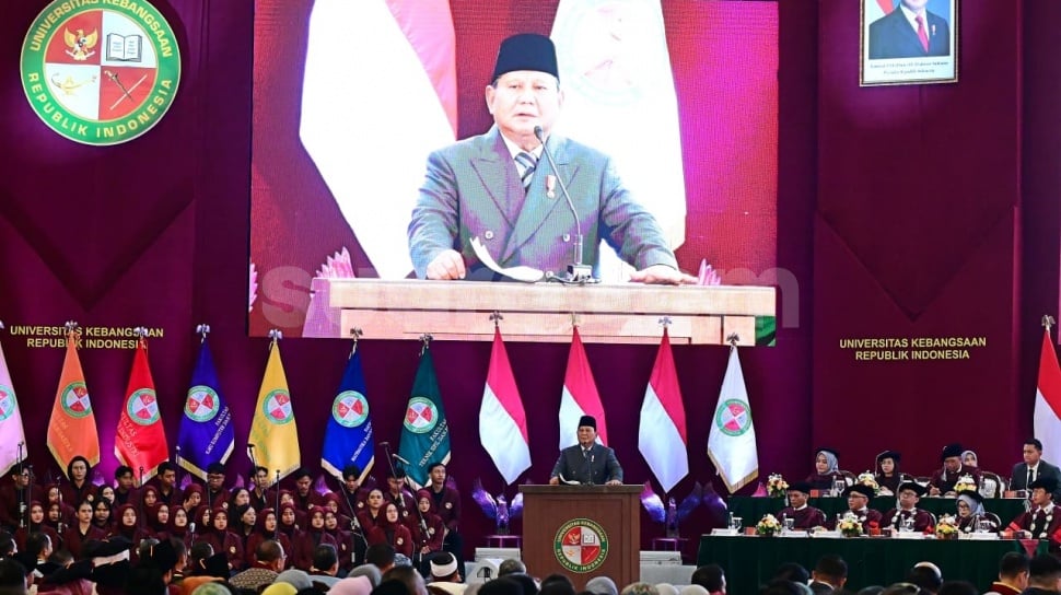 "Seminggu yang lalu saya menerima rombongan dari Rockefeller Institute yang sudah bekerja 100 tahun di bidang pangan, di bidang program anti kelaparan dan anti kemiskinan," ujar Prabowo dalam orasinya di Universitas Kebangsaan Republik Indonesia (UKRI), Bandung, Jawa Barat, Sabtu (18/10/2025).