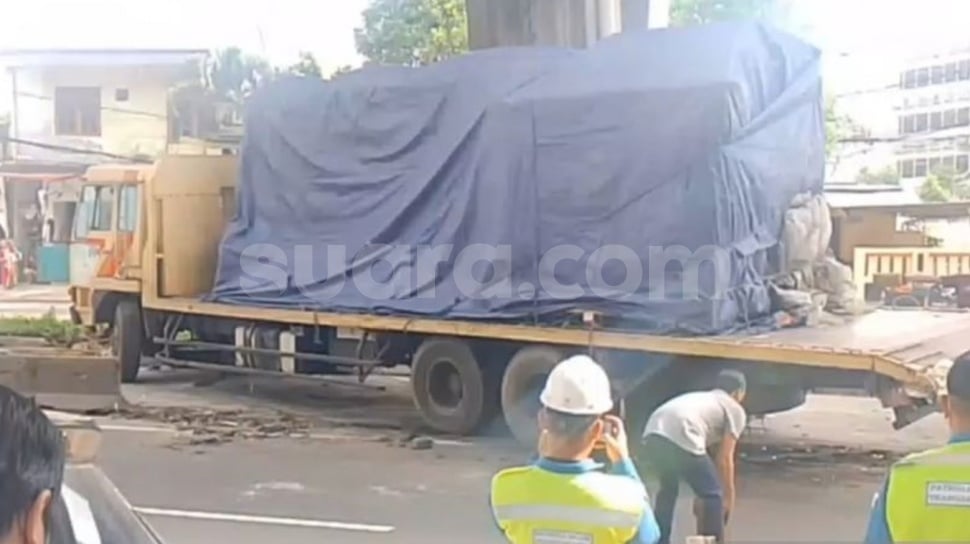 - Insiden ini tidak menimbulkan korban jiwa, dan truk sedang dievakuasi oleh Dinas Perhubungan DKI Jakarta.