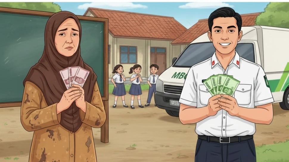 Kondisi miris tersebut terlihat ketika membandingkan penghasilan guru honorer dengan pekerja lain yang masuk ke lingkungan sekolah, termasuk sopir mobil program Makan Bergizi Gratis (MBG).