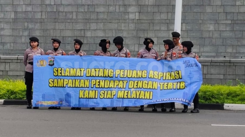 Kehadiran polwan dengan spanduk itu menjadi bagian dari upaya aparat untuk menciptakan suasana yang kondusif sekaligus memberikan pesan bahwa penyampaian pendapat di muka umum tetap difasilitasi, selama dilakukan secara damai dan tertib.