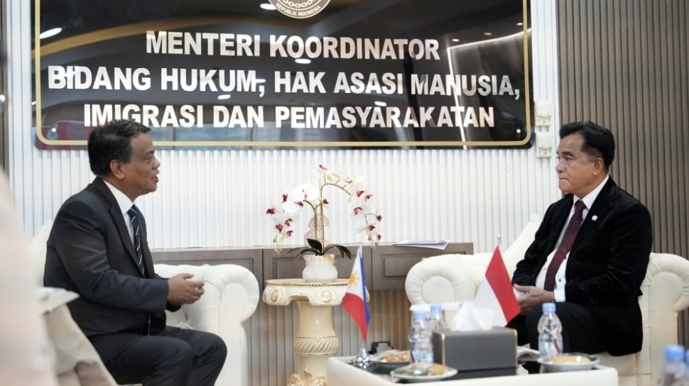 Suara.com - Menteri Koordinator Bidang Hukum, Hak Asasi Manusia, Imigrasi, dan Pemasyarakatan (Menko Kumham Imipas), Yusril Ihza Mahendra, menerima kunjungan Duta Besar Filipina untuk Indonesia, Christopher B. Montero. Pertemuan tersebut membahas penguatan kerja sama hukum, termasuk kemungkinan transfer narapidana (Transfer of Prisoner).