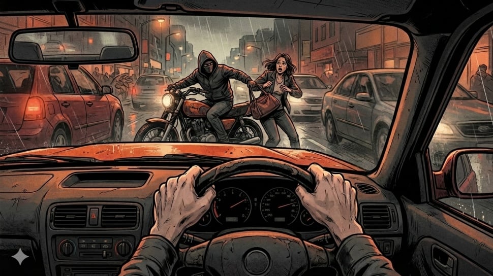 - Artikel ini menyajikan skenario hipotetis mengenai perampokan motor terhadap pejalan kaki di malam hari.