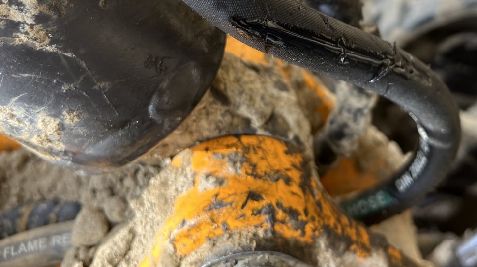 - Kerusakan terjadi pada selang hidrolik ekskavator yang digunakan untuk pembersihan pascabanjir dan longsor di lokasi tersebut.