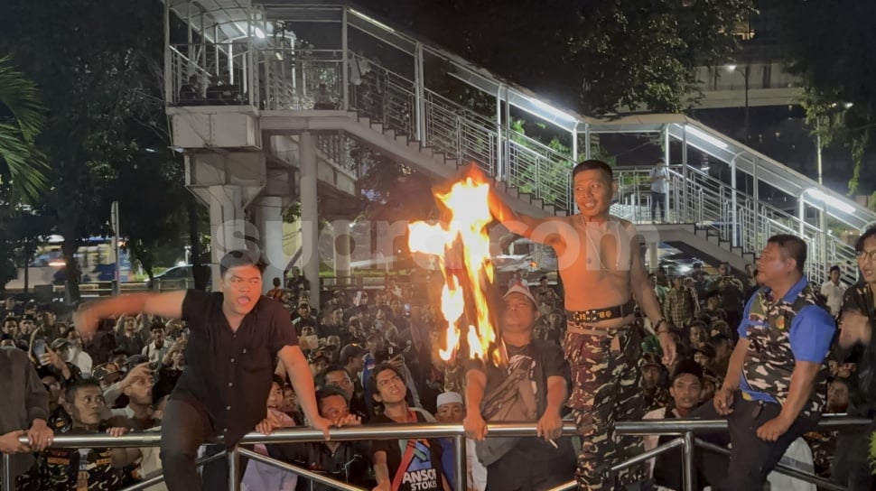 Salah satu dari mereka bahkan membakar kaos hitam berlogo KPK sebagai aksi protes terhadap penahanan Gus Yaqut selaku tersangka kasus dugaan korupsi pada pembagian kuota dan penyelenggaraan haji di Kementerian Agama tahun 2023-2024.