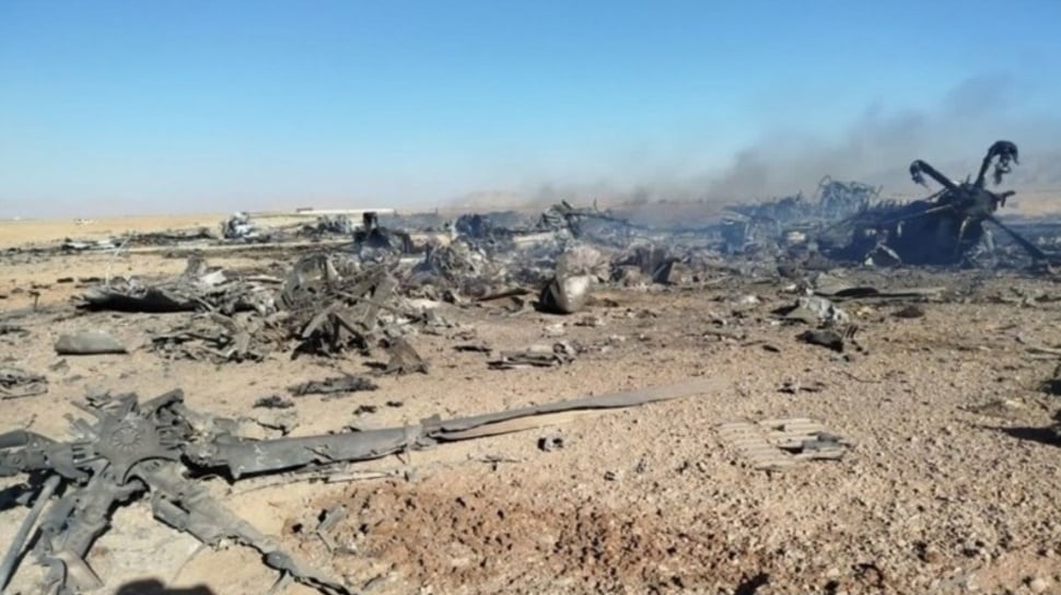 Dua helikopter Black Hawk dan satu C-130 hancur terbakar di wilayah Isfahan selatan.