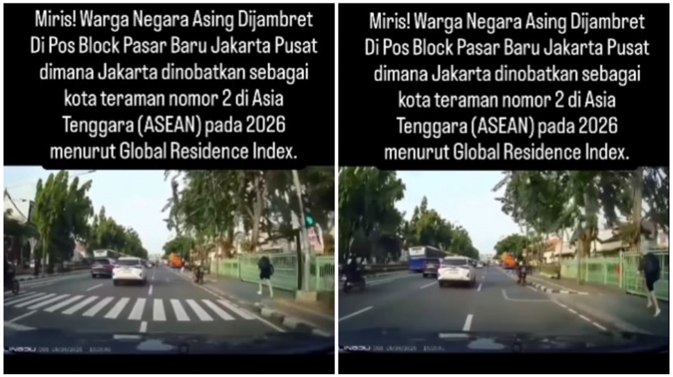 - Dua pelaku menjambret ponsel milik warga Jerman bernama Robin di Jalan Lapangan Banteng Utara, Jakarta Pusat, Minggu (19/4/2026).