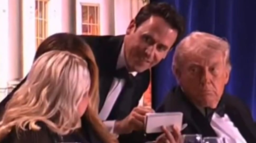 Saat itu, Trump tengah duduk di meja utama bersama Melania Trump ketika penghibur acara sedang tampil di atas panggung.