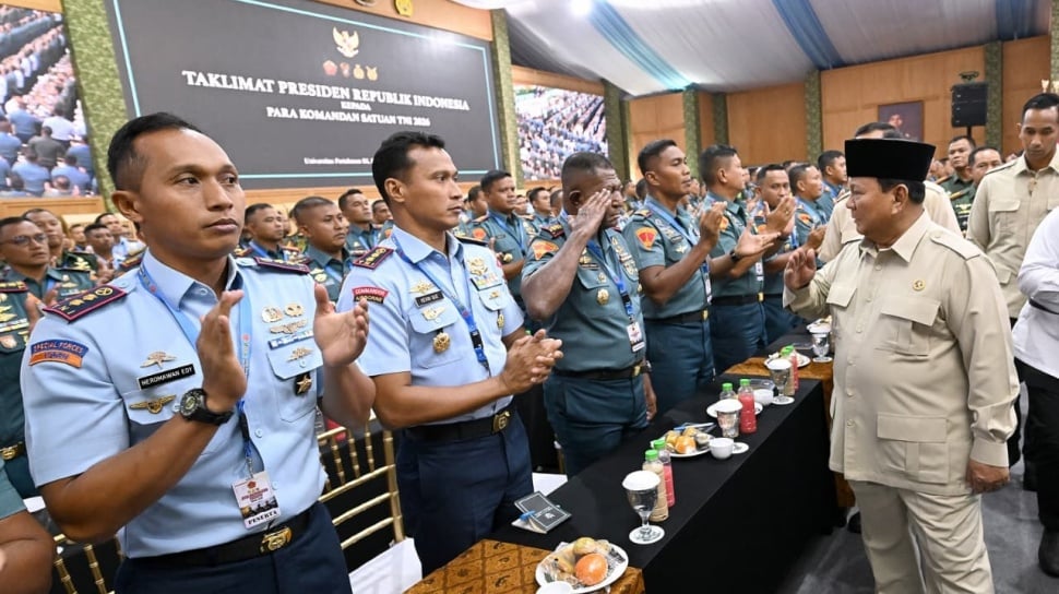 Suara.com - Presiden Prabowo Subianto memberikan taklimat kepada para Komandan Satuan (Dansat) TNI Tahun 2026 di Universitas Pertahanan (Unhan), Kabupaten Bogor, Jawa Barat, Kamis (30/4/2026).